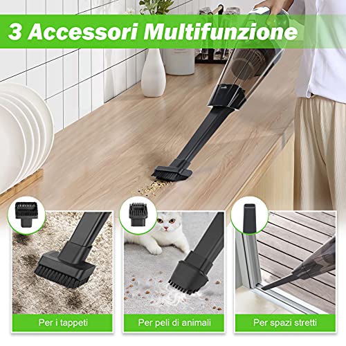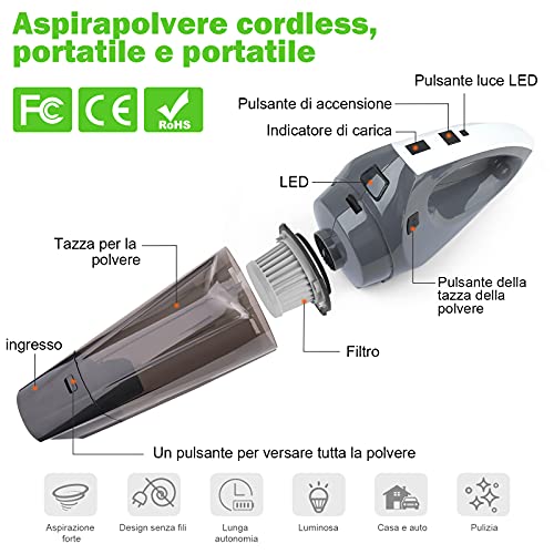 Wireless design and improved washable HEPA filter: this wireless rechargeable handheld vacuum cleaner is lightweight and portable, so you can easily clean anywhere. Equipped with a stainless steel HEPA filter, it is exquisite workmanship with long durability and can be washed to clean the dirt.