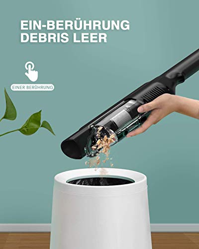 17 KPa strong suction power: the hand-held vacuum cleaner with 170 W a high-performance BLDC motor and a suction power of up to 17 Kpa, which corresponds to 2-3 times the normal hand-held vacuum cleaner. Thanks to its wireless operation and high suction power for the absorption of animal hair, crumbs, paper shredds etc. in the house or in the car. 69dB quiet design, will not disturb your children or scare your pet.