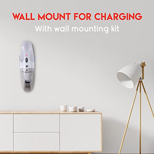 Compact and wireless: the handheld vacuum cleaner is compact, cordless and hangs in its charger on the wall, so that it is always at hand.