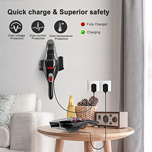 Lightweight and easy to use: this wireless handheld vacuum cleaner weighs only 1.84 pounds. With the convenient handle and one-touch design, you can easily clean your home, car and office. EASY TO STORE – Space saving wall mount allows for easy storage when charging or not in use.