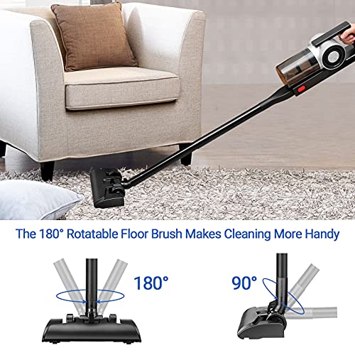 Versatile use: the Audewdirect bagless vacuum cleaner is equipped with 4 nozzles and can be used as a hand-held or upright vacuum cleaner. Large flat nozzle: for dusting large areas or for liquids; crevice nozzle: for easily picking up dust in corners; brush: for cleaning uneven surfaces such as duvets, ceilings, etc. 270 degree swivel mop: easy to pick up dust on the floor without bending over when the extension hose is attached.