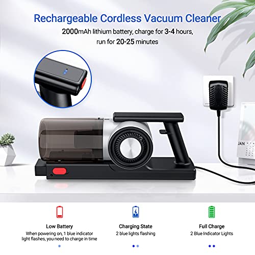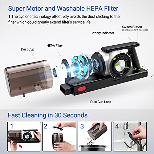 Efficient charging: the Audewdirect battery handheld vacuum cleaner has 4 x 14.8 V 2000 mAh lithium batteries and a fast charging technology that allows it to work continuously for 20-25 minutes with a 3-4 hour charge. The wireless vacuum cleaner is free of cables and can clean the whole house, so you don’t have to look around for a socket to turn on the vacuum cleaner for vacuuming.