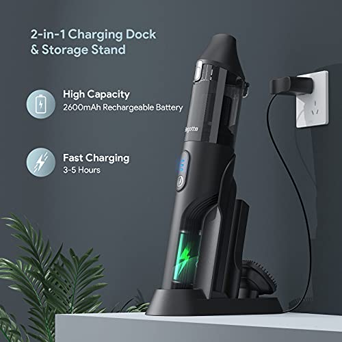 Fast charging and long working time: Built-in 2600 mAh battery, it only takes about 3-5 hours to fully charge the car vacuum with our charging station, and offers you a long working time of up to 15 minutes at 12 KPA in high suction mode and 35 minutes in 7 KPA standard mode.