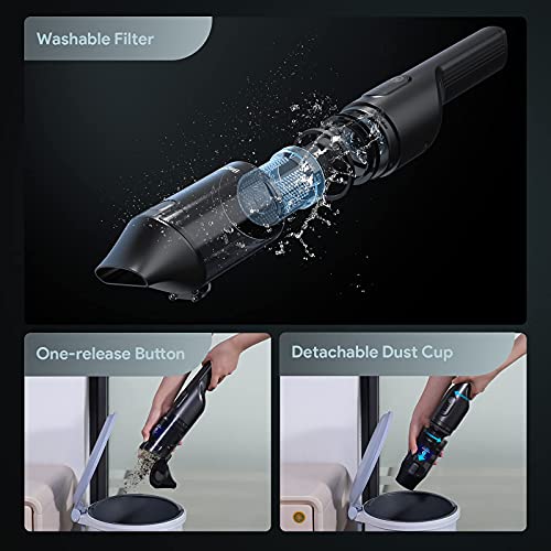 Two suction modes and low noise: the battery handheld vacuum cleaner offers a strong suction power of up to 12000 Pa and a standard suction power of 7000 Pa to meet your different cleaning needs with less noise
