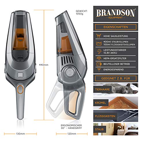 Specification: Brandson – Power Handstaubsauger – Akku Staubsauger – Auto Staubsauger – Hohe Saugleistung – Nass und Trocken Staub und…