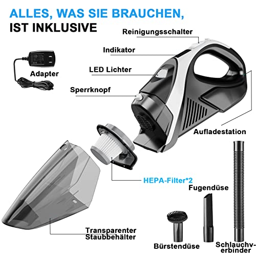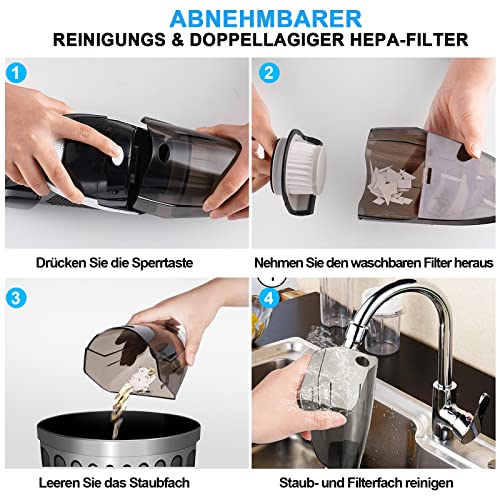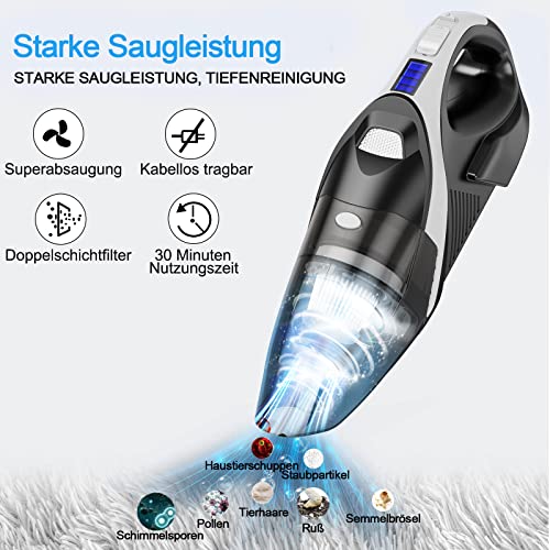Specification: Handstaubsauger Akku Kabellos Beutellos – 9000Pa Leicht und Handlich Starke Sogwirkung Staubsauger, 3-in-1 Nass…