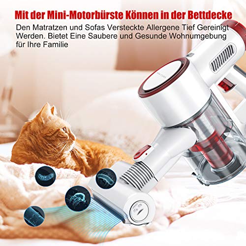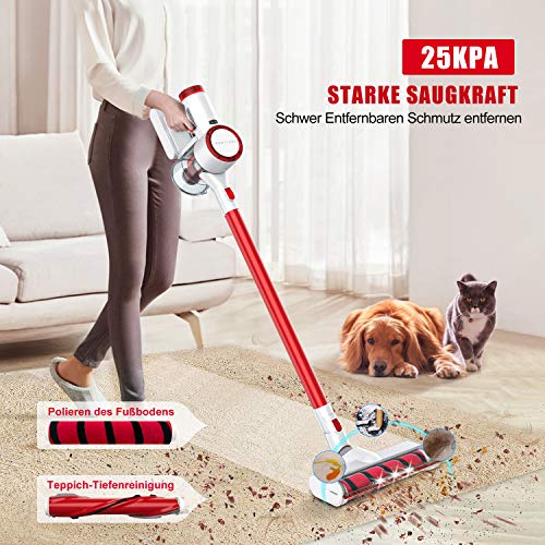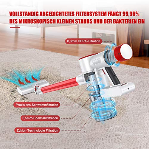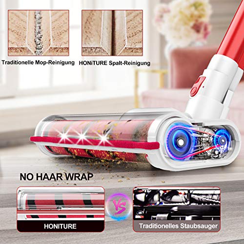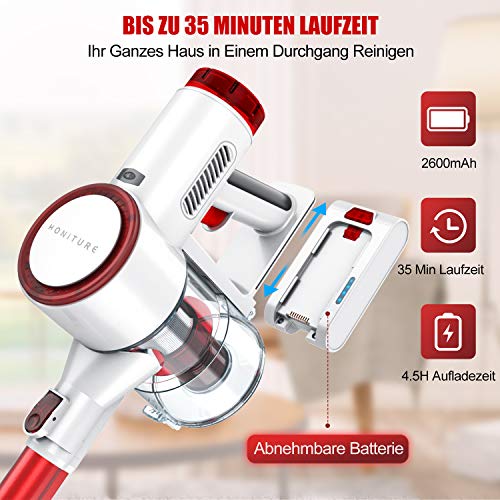 Specification: HONITURE Akku Staubsauger 25KPa Starke Saugkraft Kabelloser Stabstaubsauger, Akkusauger Beutellos, Abnehmbarer Akku