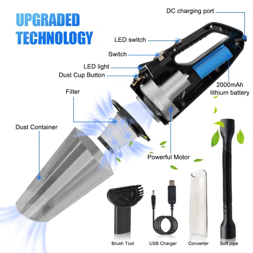 Suitable for car and home: 9000 PA suction power handheld vacuum cleaner, lightweight and portable, includes: 1 x handheld vacuum cleaner, 1 x extension hose, 1 x brush, 1 x cleaning rod, 1 x USB cable, 1 x storage bag, cordless vacuum cleaner, long service life. Battery table vacuum cleaner, ideal as a gift for friends, gifts for home, family, women. or as a wedding, birthday, first apartment.