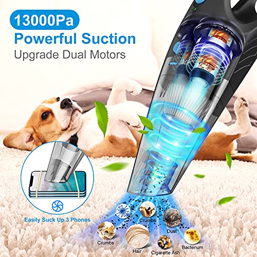 PODOOR Handstaubsauger Akku 13000Pa, Autostaubsauger Kabelloser Wiederaufladbar Staubsauger (Nass Trocken,120W,2000mAh…