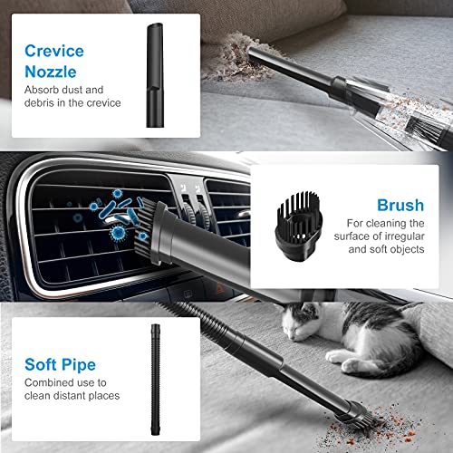 MULTIFUNCTIONAL ACCESSORIES: With 3 attachments, a PODOOR car vacuum cleaner can meet all your cleaning needs of home and car. The brush tool is suitable for human/pet hair, carpets, lampshades and keyboards. The crevice tool for narrow joints and corners. And the soft long tube for hard-to-reach areas. You can combine this accessory to clean your home and car as needed. We offer a small brush to clean the filter.