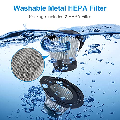 2 Easy to clean stainless steel filters: PODOOR handheld vacuum cleaner, which is equipped with 2 professional stainless steel HEPA filters, can absorb 99.97% of dust, a lifetime performance equivalent to 25 HEPA filters. Durable, reusable, washable and more environmentally friendly.