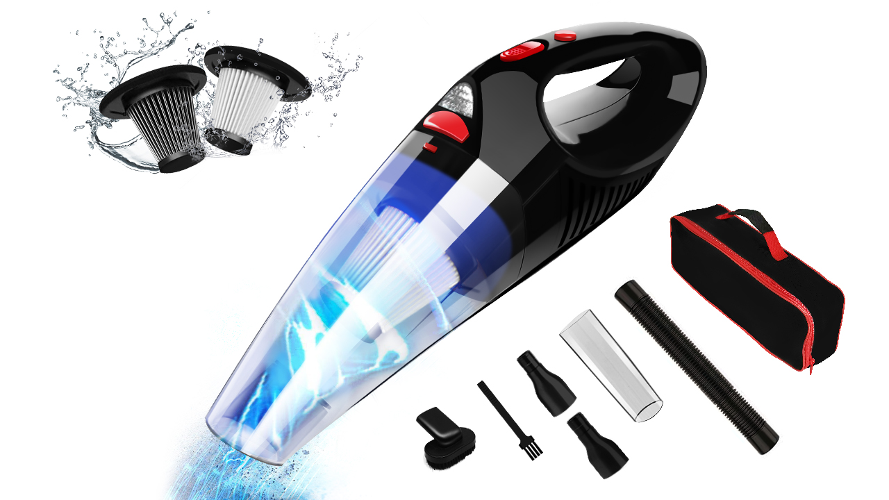 Complete accessories: car handheld vacuum cleaner with extended hose, hair brush and nozzle. You can change the accessories for easy cleaning in any situation. Depending on the current situation, you can choose two types of filters, which prevents dust from attracting the filter to maintain maximum suction power when in use. Comes with a storage bag for easy transport and storage