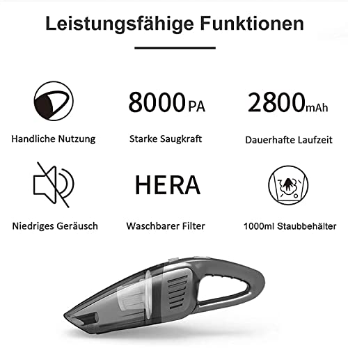 Specification: Vecoor Handstaubsauger,8000PA leistungsstarker Staubsauger,2800mAh Akku Bürststaubsauger 120W,1000ml Staubbehälter,Nass…