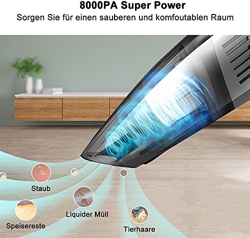 Vecoor Handstaubsauger,8000PA leistungsstarker Staubsauger,2800mAh Akku Bürststaubsauger 120W,1000ml Staubbehälter,Nass…