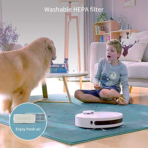 [Sophisticated design] – The washable filter retains a high filtration level of up to 99.96%, even after one year of use. The vacuum stays close to the ground over a variety of cleaning surfaces and provides maximum cleaning power with the proprietary floating main brushes. No need to attach anti-collision strips when you set the border area.