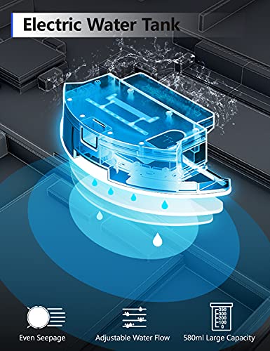 Large battery capacity and strong suction power: 3200 mAh battery capacity of the M8 robot vacuum cleaner, running time up to 130 minutes, i.e. the max. Suction surface is about 150 square metres and the suction power can reach 3000 Pa. 280 ml dust container and 300 ml water tank integrated.