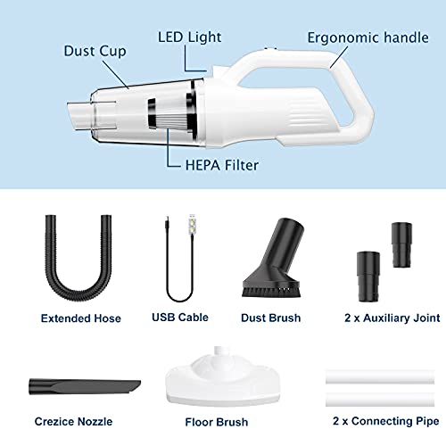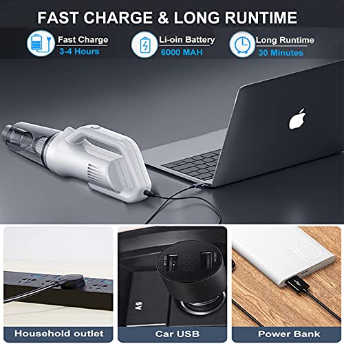 Specification: Akku Handstaubsauger, 12000pa Starke Saugleistung, 30-Minuten-Laufzeit, leicht, extrem leise, wiederaufladbarer Akku, 2…