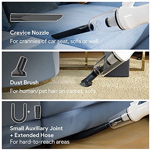 Versatile accessories: the quiet battery vacuum cleaner supports 3 adjustable suction strengths and adapts to different cleaning situations from floor to ceiling. Easily converts into a handheld vacuum cleaner with 3 combined attachments to reach corners and gaps