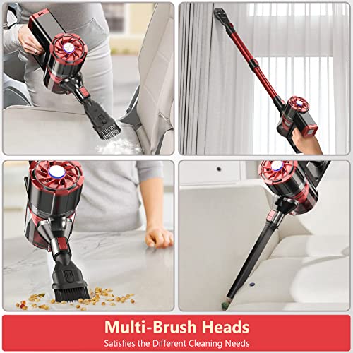 【Multiple filtration and one-touch dust removal】The 1.2 L dust box can hold more dust. Cordless vacuum cleaner: 4 filter layers remove 99.97% of particles that are as small as 0.3 microns, which makes the exhaust air of the cordless and bagless battery vacuum cleaner for animal hair cleaner and silent. The strong suction power of the vacuum cleaner allows for cleaning at the touch of a button. Cordless vacuum cleaner for flexible and thorough cleaning in your home. Cordless vacuum cleaner.