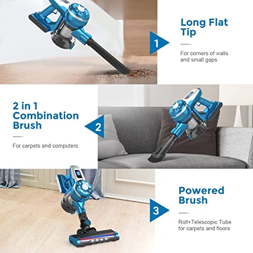 Specification: VICSOO Akku Staubsauger, Kabellos Stabstaubsauger 4 In 1, 140W, 2 Saugstufen, 12/20KPa, 40 Minuten Autonomie, Kabelloser…