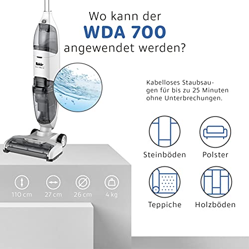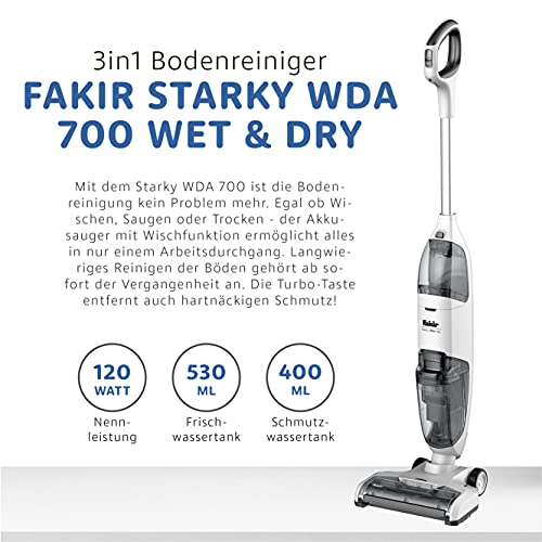 Specification: Fakir Starky WDA 700 – Schnurloser Nass- & Trockensauger mit Wischfunktion I 3-in-1-Bodenreiniger für harte Böden I Akku…