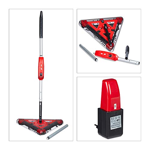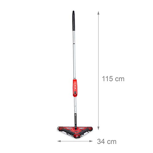 Specification: Relaxdays Akkubesen ohne Beutel, kabellos, dreieckiger Kopf, rotierende Bürsten, Elektrobesen, 115x34x34 cm, rot/schwarz