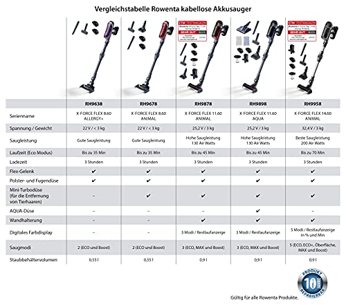 Specification: Rowenta RH9638 X-Force Flex 8.60 Allergy Akku-Staubsauger | Stab & Handstaubsauger | LED-Düse | Flex-Gelenk | 99,9…
