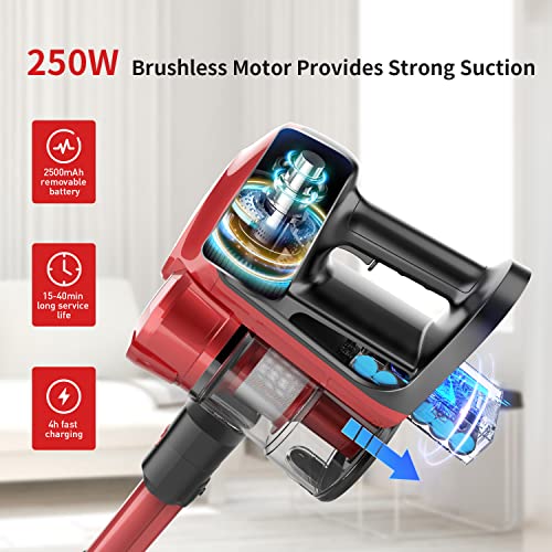 Specification: VICSOO Akku Staubsauger, Ohne Kabel Staubsauger, 4 IN 1 Kabelloser Staubsauger mit 2 Saugstufen, 13/25KPa, 40 Minuten…