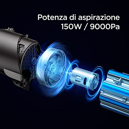 Strong suction power: the built-in 150 W DC motor ensures a strong suction power