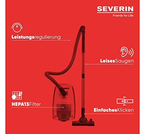 Specification: SEVERIN Bodenstaubsauger mit Beutel, leistungsstarker Staubsauger mit praktischem Zubehör, leiser Sauger mit 360° Rollen…
