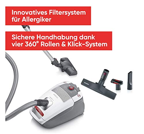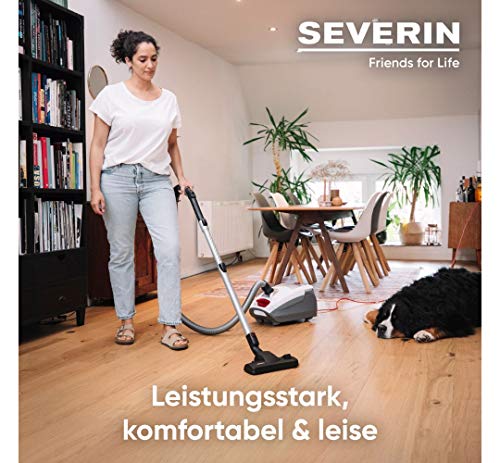 SEVERIN Bodenstaubsauger mit Beutel, leistungsstarker Staubsauger mit praktischem Zubehör, leiser Sauger mit 360° Rollen…